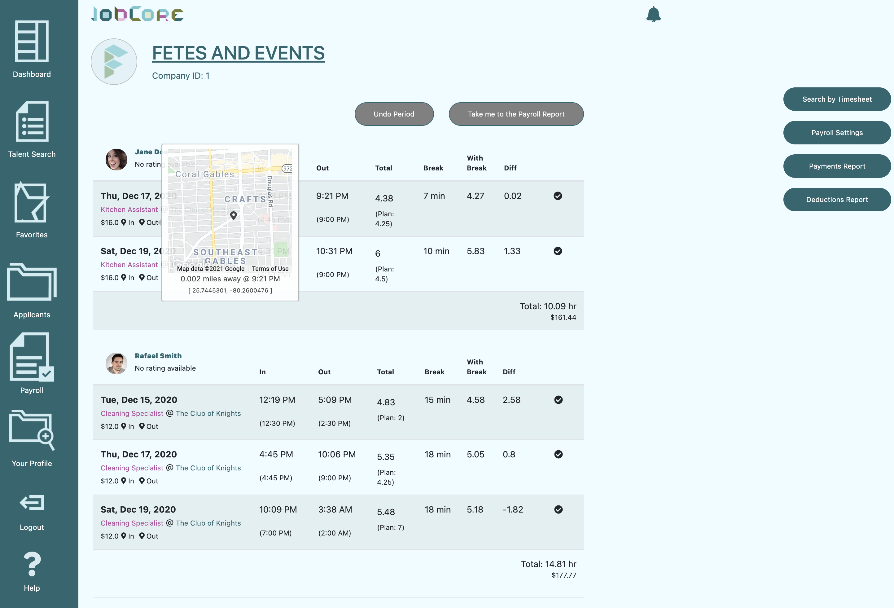 JobCore Talent is a platform focused on the hospitality industry that connects caterers, full service restaurants, nightclubs, bars and janitorial services companies to qualified part-time workers.